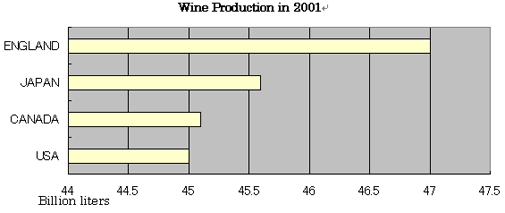The chart shows the production of wine in England, Japan, Canada and USA